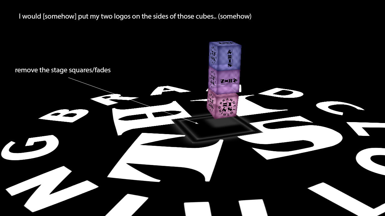 | Some Visual Arena-like Space | Replace with a MOD? Spin some Logo's | https://codepen.io/atzedent/full/KKRXmQP |