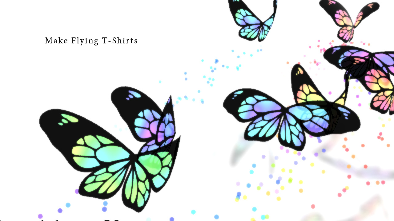 | Butterfly to T-Shirts | Let's Fly T-Shirts instead of Butterflies | https://ykob.github.io/sketch-threejs/sketch/butterfly.html |
