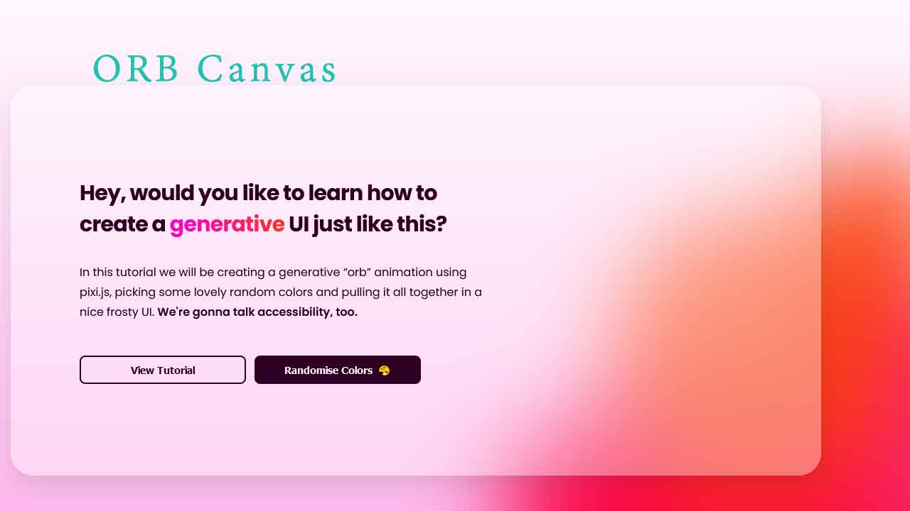 | ORBS with overlay TEXT BOX | pixi.js -Will be used for different purpose for information [unknown] | https://codepen.io/georgedoescode/pen/XWNmvro |