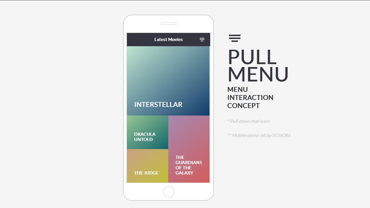 | Pull Menu | Pull Menu for GitXome! App | https://codepen.io/_fbrz/pen/bNdMwZ |