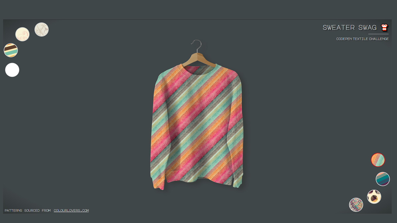 | Sweater Changer | Something like THIS™ ~Maybe | https://codepen.io/JoshuaVB/full/VwbmQpv |